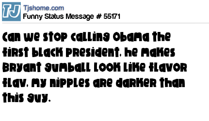 X Can we stop calling Obama the first black president, he makes Bryant gumball look like flavor flav, my nipples are darker than this guy.