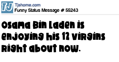 - # 55455 Osama Bin Laden just found out that his 70 virgins are gay men...too late! Up yours, Osama!!!