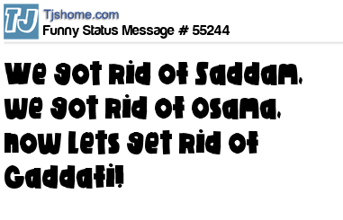 X We got rid of Saddam, we got rid of Osama, now lets get rid of Gaddafi!