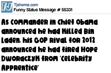 X says As Commander in Chief Obama announced he had killed Bin Laden, his GOP rival for 2012 announced he had fired Hope Dworaczyk from 'Celebrity Apprentice'