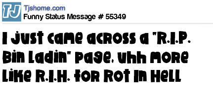 X I just came across a "R.I.P. Bin Ladin" page, uhh more like R.I.H. for Rot In Hell