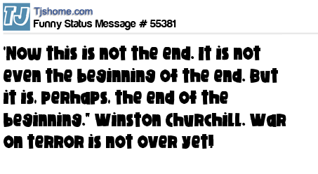 X 'Now this is not the end. It is not even the beginning of the end. But it is, perhaps, the end of the beginning." Winston Churchill. War on terror is not over yet!