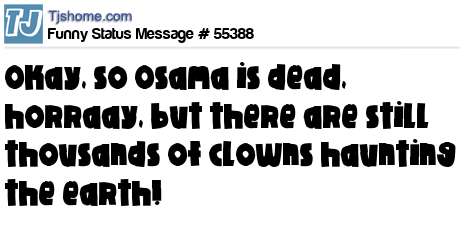 X Okay, so Osama is dead, horraay, but there are still thousands of clowns haunting the earth!
