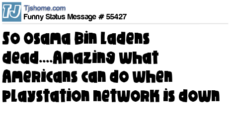 - # 55479 USA has confirmed the death of Osama Bin Laden. See what they're capable of when the Playstation Network is down?!