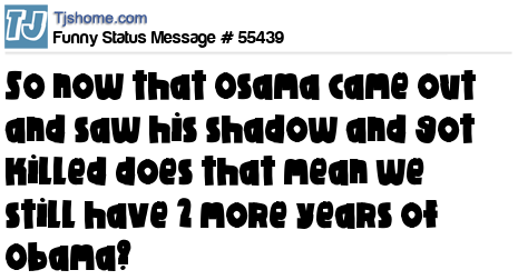 X So now that Osama came out and saw his shadow and got killed does that mean we still have 2 more years of Obama?