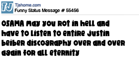 X is OSAMA may you rot in hell and have to listen to entire justin beiber discography over and over again for all eternity
