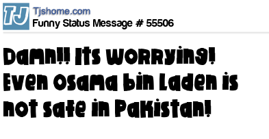 - # 25494 Osama Bin Laden has updated his facebook status. The FBI has left the afganistan/Pakistan border and is now searching for him in Farmville.