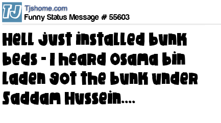 X Hell just installed bunk beds - I heard Osama bin Laden got the bunk under Saddam Hussein....