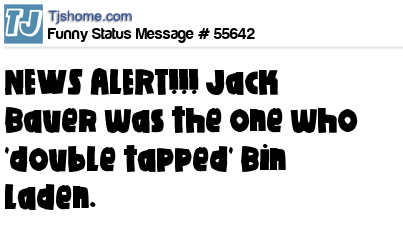 - # 55391 Too effin bad that Jack Bauer doesn't work for US govt. He would've caught hold of Laden in 24 hours!