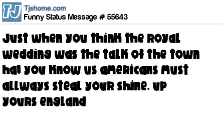 X is just when you think the royal wedding was the talk of the town ha! you know us americans must allways steal your shine. up yours england