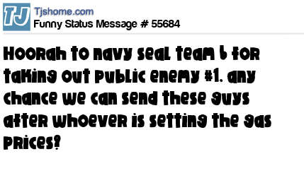 X is hoorah to navy seal team 6 for taking out public enemy #1. any chance we can send these guys after whoever is setting the gas prices?