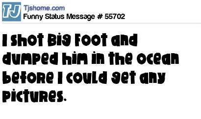 - # 55626 I shot Big Foot last night but I dumped the body in the ocean before I could get a picture.