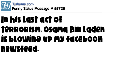 - # 55536 Osama may be dead.. but hes still blowing up my newsfeed