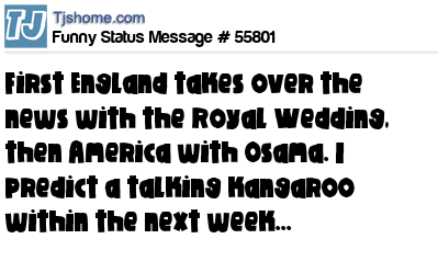 - # 55643 just when you think the royal wedding was the talk of the town ha! you know us americans must allways steal your shine. up yours england