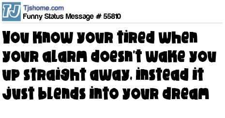X You know your tired when your alarm doesn't wake you up straight away, instead it just blends into your dream