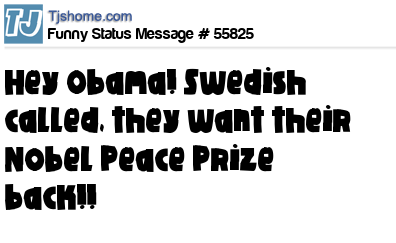 X is Hey Obama! Swedish called, they want their Nobel Peace Prize back!!