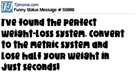 X is I've found the perfect weight-loss system. Convert to the metric system and lose half your weight in just seconds!