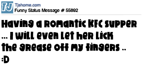 X is having a romantic KFC supper ... I will even let her lick the grease off my fingers .. :D