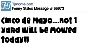 X is Cinco de Mayo....not 1 yard will be mowed today!!
