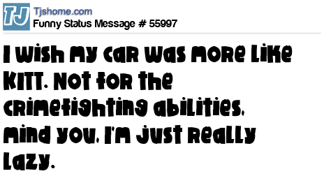 X is I wish my car was more like KITT. Not for the crimefighting abilities, mind you, I'm just really lazy.