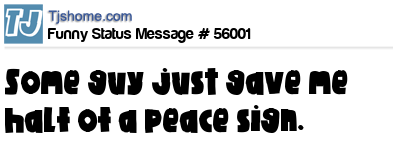 - # 203929 Someone just gave me half of a peace sign. Weird.