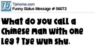 X what do you call a Chinese man with one leg ? Tye wun shu.