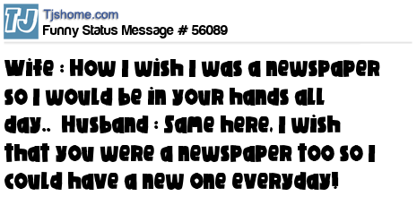 - # 29007 Wife: I wish I was newspaper, so I'd be in your hands all day. Husband:I too wish that you were newspaper, so I could have a new one everyday.