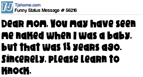 X is Dear mom, You may have seen me naked when I was a baby, but that was 15 years ago. Sincerely, please learn to knock.