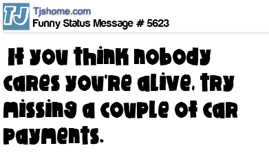 - # 22277 If you think nobody cares if you're alive, try missing a couple of car payments..