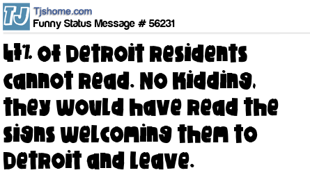 X says 47% of Detroit residents cannot read. No kidding, they would have read the signs welcoming them to Detroit and leave.