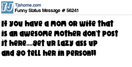 X is If you have a mom or wife that is an awesome mother don't post it here....get ur lazy ass up and go tell her in person!!