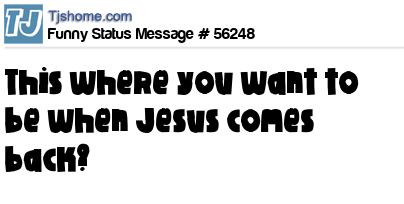 - # 110157 crazy woman on the train claiming Jesus was coming back, so I stood up and said, "yes, I am back and you are a sinner". She really freaked out when I started baptizing her with my water bottle.