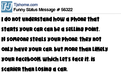 X is I do not understand how a phone that starts your car can be a selling point. If someone steals your phone, they not only have your car, but more than likely your facebook, which let's face it, is scarier than losing a car.