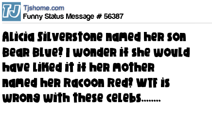 X says Alicia Silverstone named her son Bear Blue? I wonder if she would have liked it if her mother named her Racoon Red? WTF is wrong with these celebs........