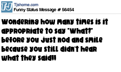 - # 13421 wondering how many times is it appropriate to say "What?" before you just nod and smile because you still didn't hear what they said?