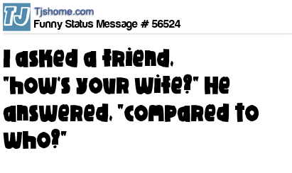 X is I asked a friend, "how's your wife?" He answered, "compared to who?"