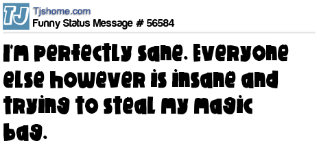 X is I'm perfectly sane. Everyone else however is insane and trying to steal my magic bag.