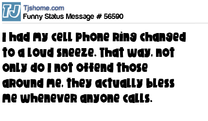 X I had my cell phone ring changed to a loud sneeze. That way, not only do I not offend those around me, they actually bless me whenever anyone calls.