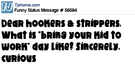 X is Dear hookers & strippers, What is "bring your kid to work" day like? Sincerely, curious