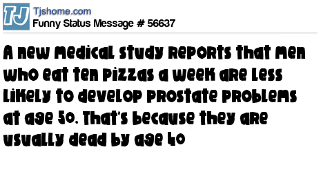 X A new medical study reports that men who eat ten pizzas a week are less likely to develop prostate problems at age 50. That`s because they are usually dead by age 40