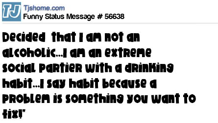 X has decided that I am not an alcoholic...I am an extreme social partier with a drinking habit...I say habit because a problem is something you want to fix!"