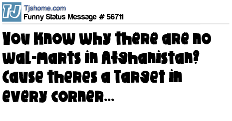 X is You know why there are no wal-marts in Afghanistan? Cause theres a Target in every corner...