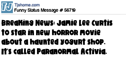 X is Breaking News: Jamie Lee Curtis to star in new horror movie about a haunted yogurt shop. It's called Paranormal Activia.