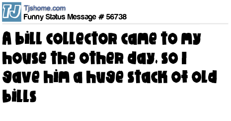 - # 210964 A bill collector called and said, "Your bill is now a year old". I said, "Tell it happy birthday" and hung up.