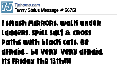 X says I smash mirrors, walk under ladders, spill salt & cross paths with black cats. Be afraid... be very, very afraid, its Friday the 13th!!!