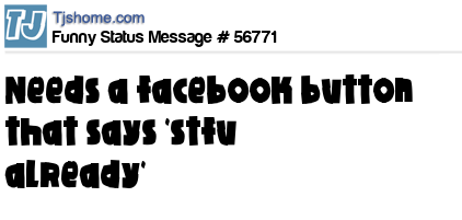 - # 57031 Facebook doesn't need a "dislike" button what it needs is a " noody effin cares" or get over yourself your really not that special button"