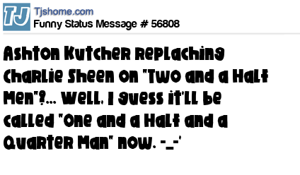 - # 56784 Ashton Kutcher replaces Charlie Sheen on Two and a Half Men.......Sheen's no longer winning is he?