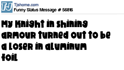 - # 48938 thought he was my knight in shining armor, but it turned out he was just some retard in aluminum foil