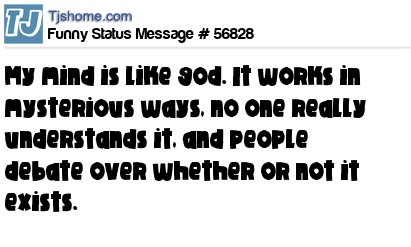 X My mind is like god. It works in mysterious ways, no one really understands it, and people debate over whether or not it exists.