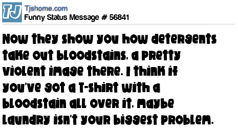 - # 115273 Now they show you how detergents take out bloodstains, a pretty violent image there. I think if you've got a T-shirt with a bloodstain all over it, maybe laundry isn't your biggest problem.Maybe you should get rid of the body before you do the wash.